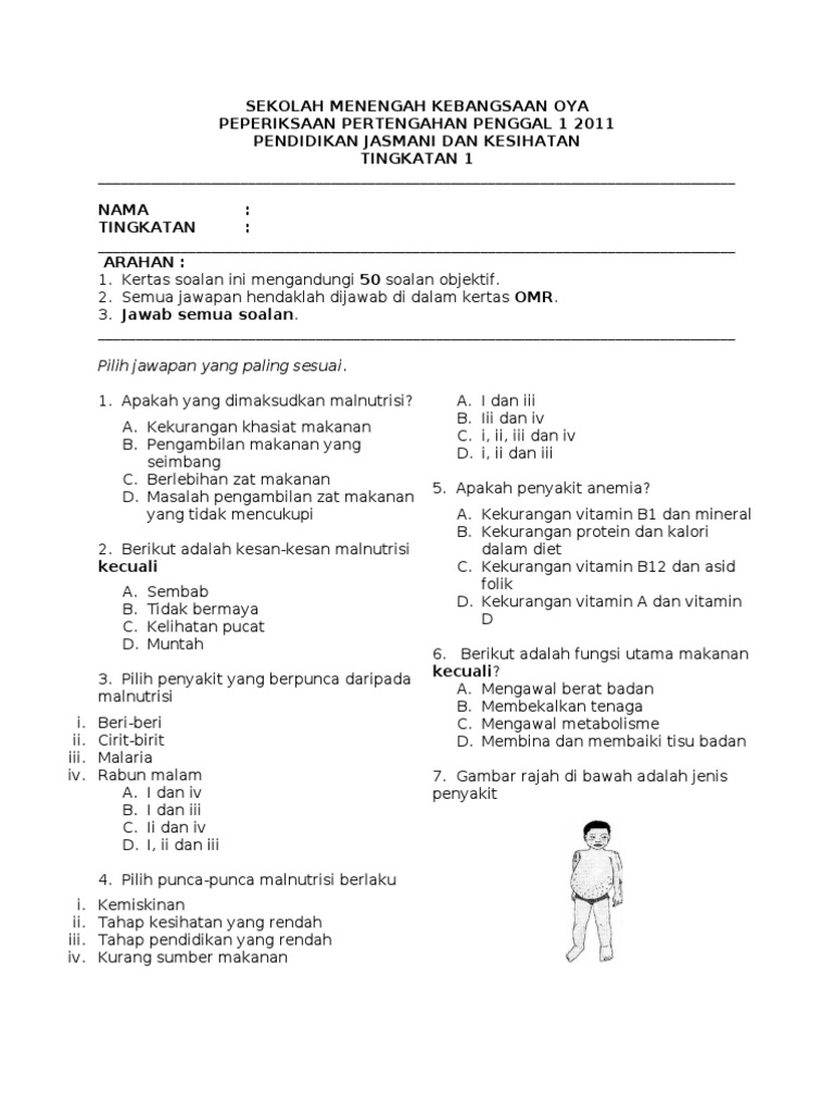 Ujian Pendidikan Jasmani Dan Kesihatan Tingkatan 2